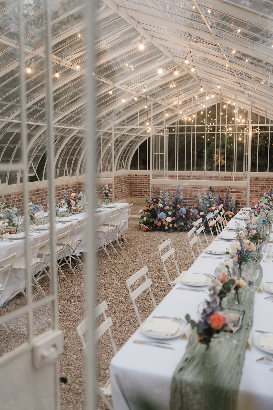 We offer to host your wedding dinner in the greenhouse, in the heart of the charming French garden of the castle grounds, for a unique event under the stars and sheltered from bad weather.